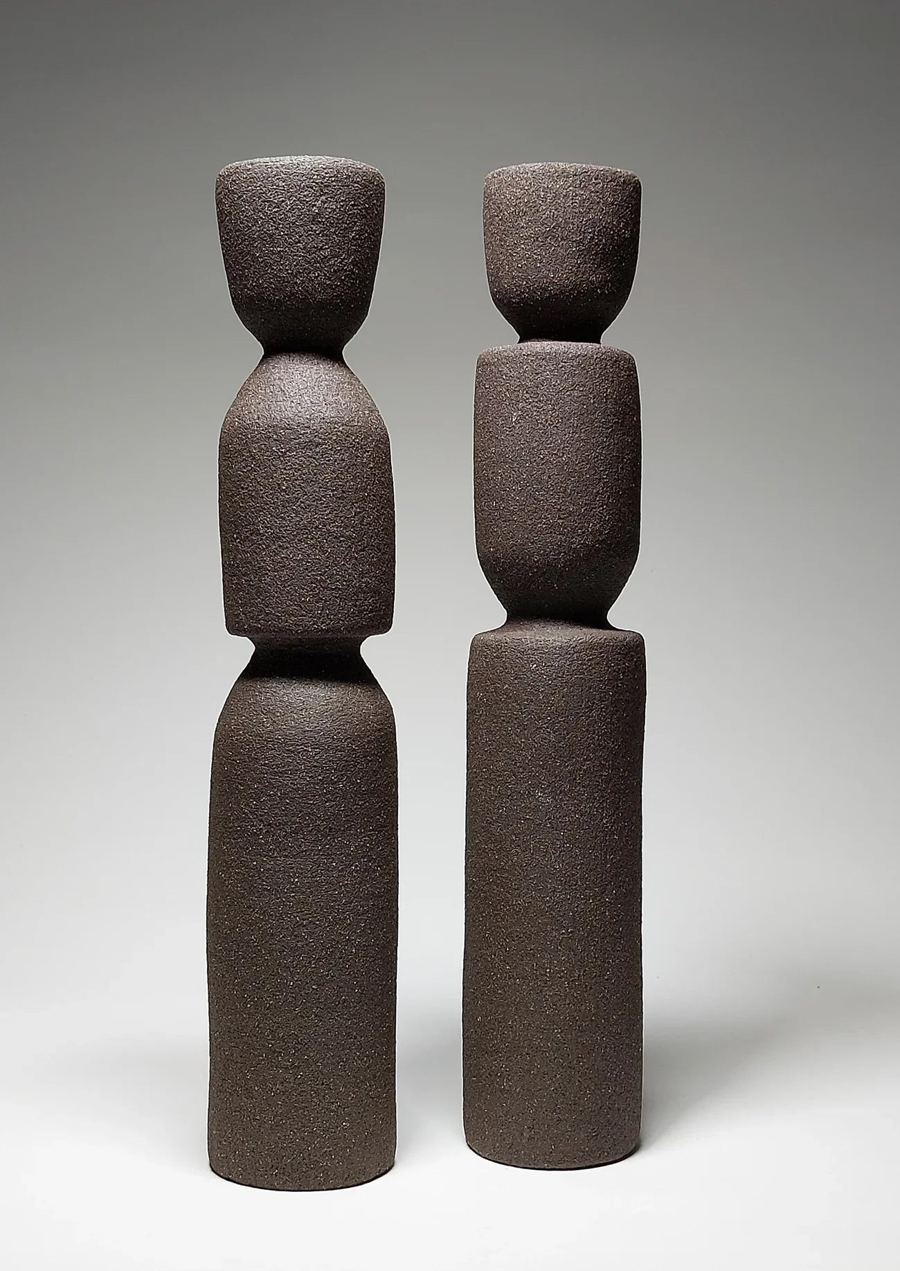 This pair of hand-built ceramic candlesticks explores ideas of balance, rhythm, and quiet strength. Made from black stoneware clay, their stacked, sculptural forms stand with a sense of presence, simple yet expressive, grounded yet full of character.