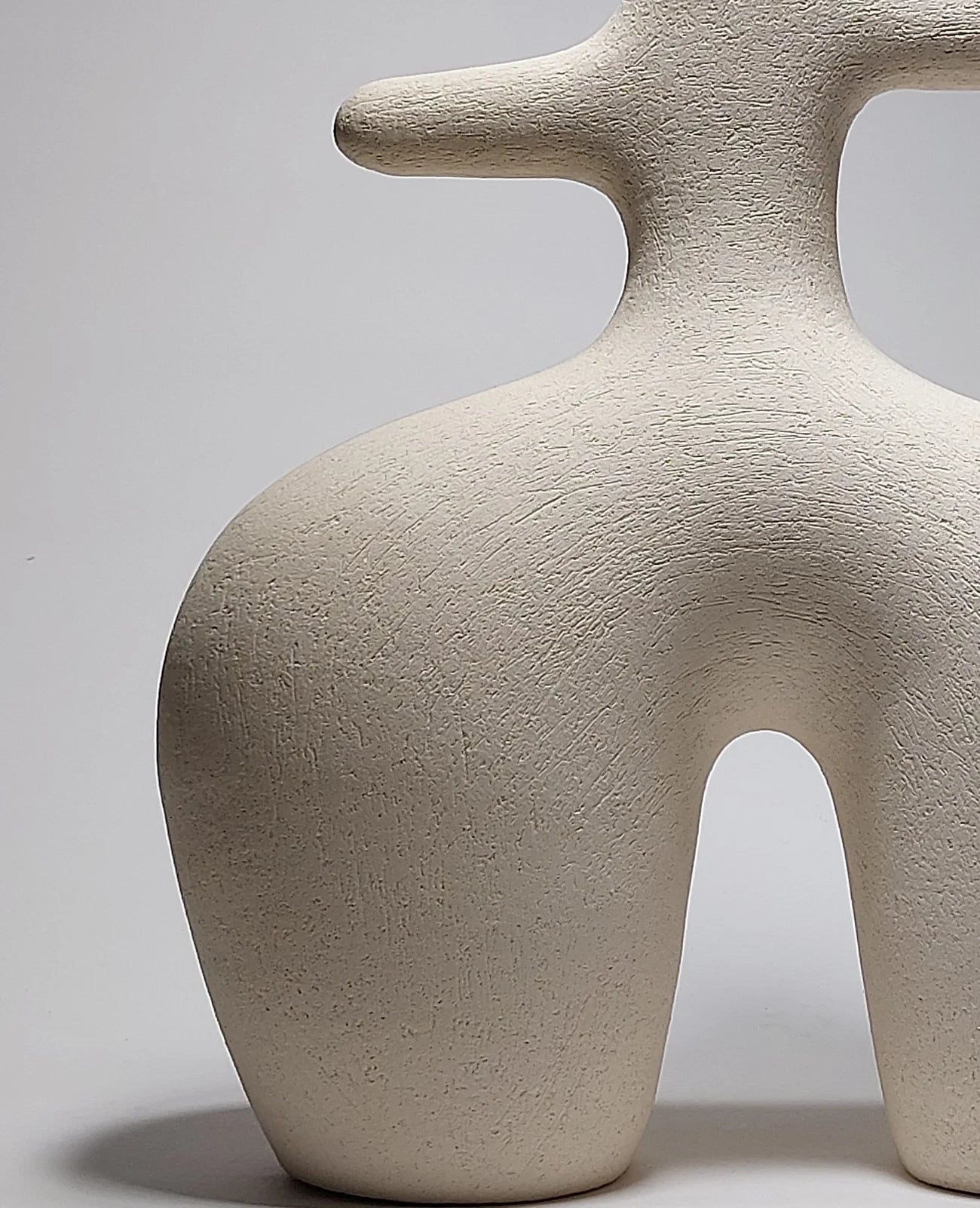 Stillness is a hand-built ceramic sculpture that explores quiet presence and grounded strength. Coiled in white grogged stoneware and left unglazed, the surface retains the clay’s natural texture and raw, tactile character.