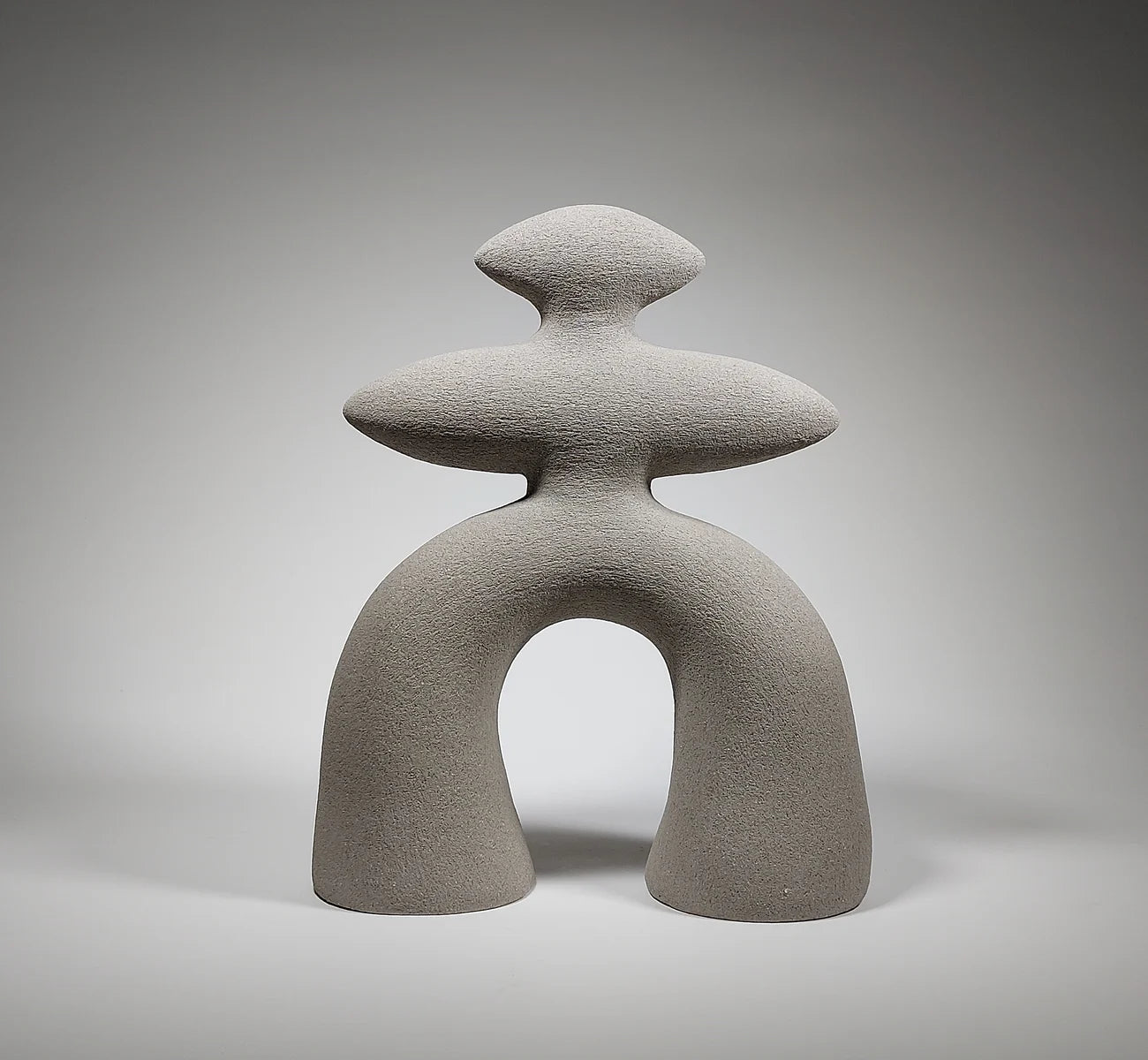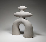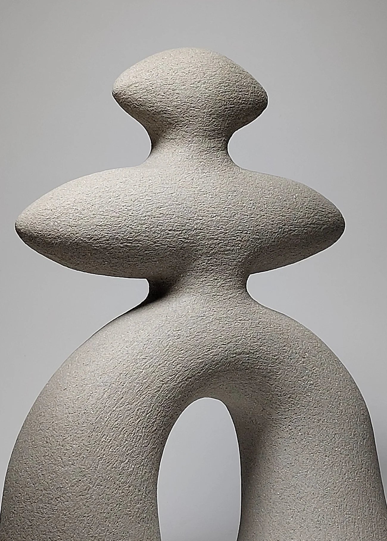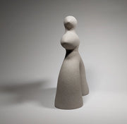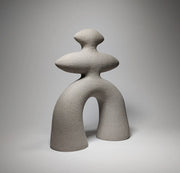 First Step is a hand-built ceramic sculpture, created using traditional coiling techniques and grogged grey stoneware clay. Its upright, dynamic form suggests a figure mid-motion, grounded, balanced, and quietly curious. With wide arched legs and a rounded top, the piece feels both sculptural and bodily, hinting at stride and stillness.