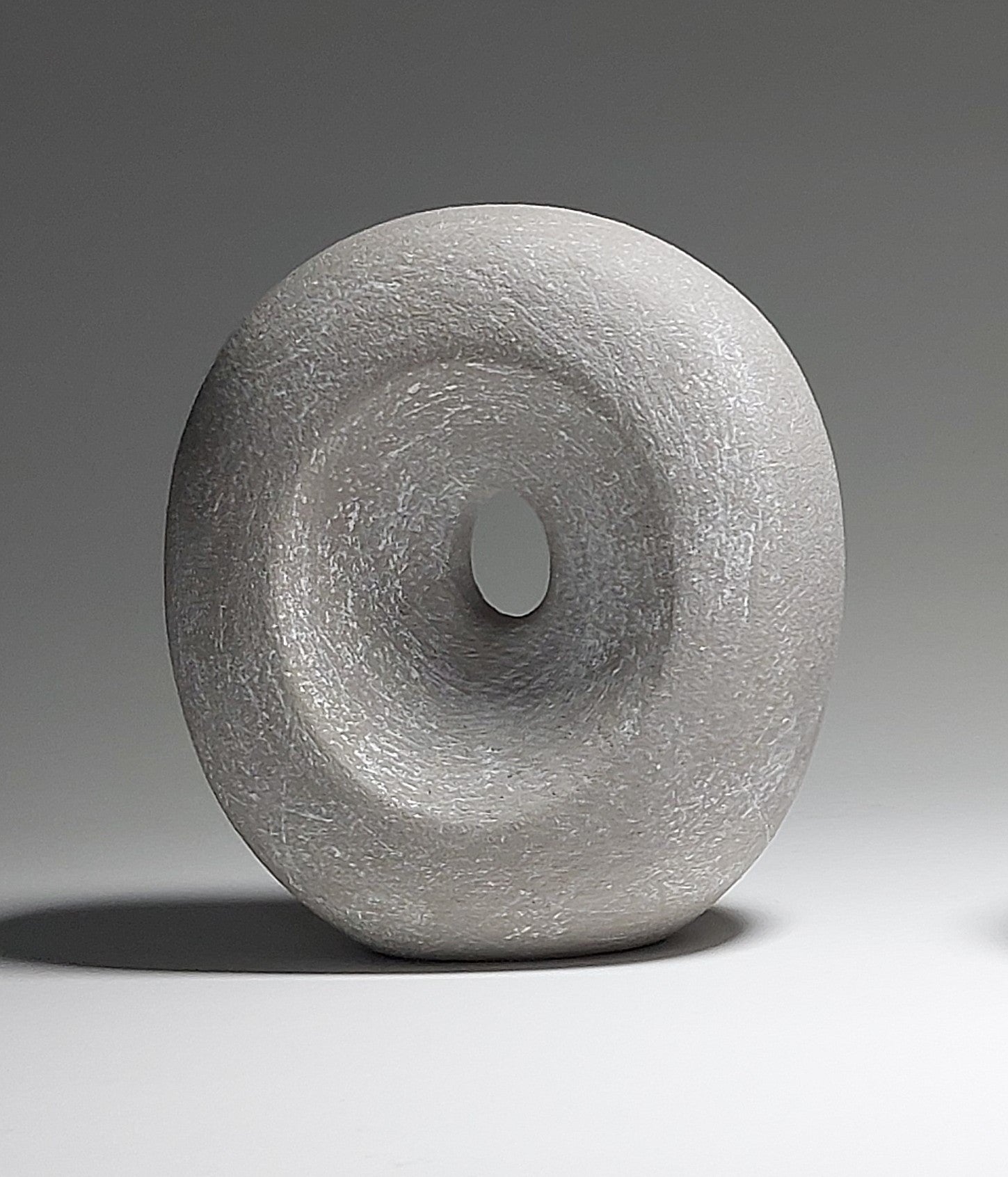 Hold is a series of small-scale ceramic sculptures, each hand-built using coiling techniques and grogged stoneware. Made in a range of clays, grey, black, and crank, these pieces are shaped to rest in the palm, their circular forms and central openings inviting touch and contemplation.