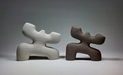 Hand-built and available in black, grey, and white stoneware clay, each sculpture offers a subtly different tactile and visual experience. The raw, textured surfaces enhance the sculptural clarity of form, allowing the material to resonate quietly.
