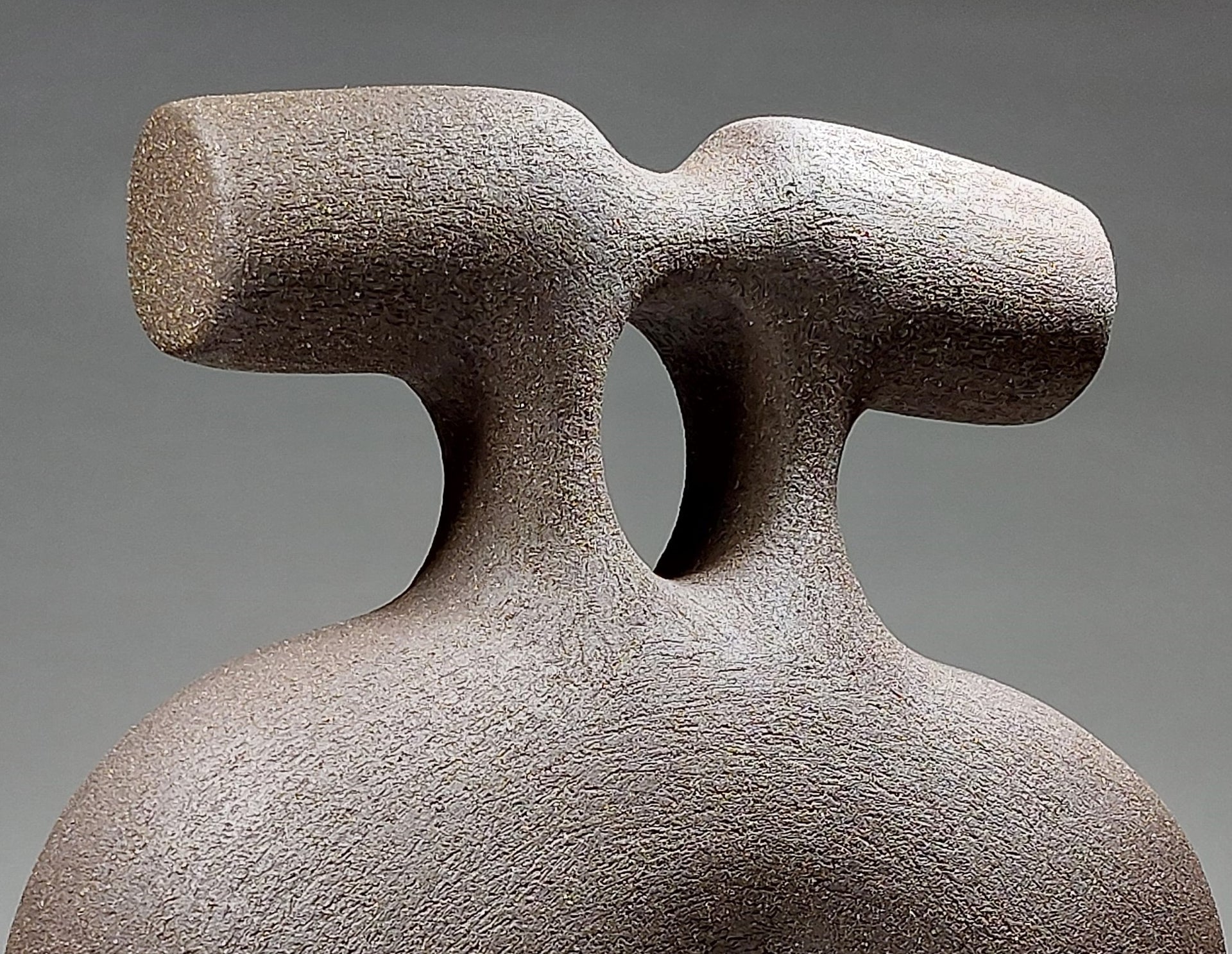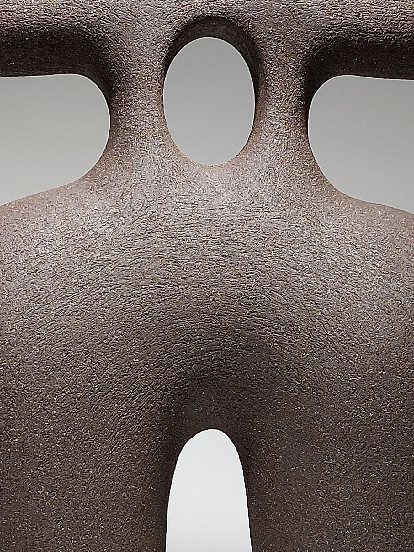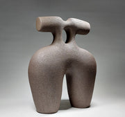 The surface is left raw and textured, revealing the natural grit of the clay and the rhythm of hand-building. There’s a quiet presence to this piece, solid yet soft, symmetrical yet expressive. It holds a sense of stillness, connection, and ambiguity, allowing space for the viewer’s own emotional response. Whether seen as two figures or one, The Kiss is about closeness, balance, and the beauty of form in flux.