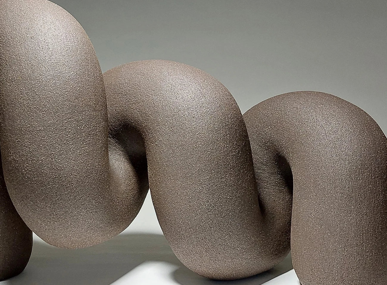 Its dense, looping structure suggests torque and compression, as though the piece is caught in a moment of motion held in suspension. There is a quiet energy running through the curves, something grounded, but alive.